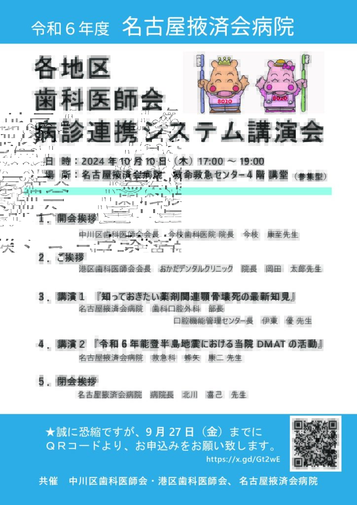 「各地区歯科医師会病診連携システム講演会」のお知らせ