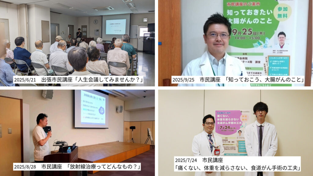 がん診療支援センターでは、地域の皆さまに向けたがん啓発活動の一環として、年間を通じて講演会を実施しています。がんの正しい知識や早期発見の大切さをお伝えすることで、地域の健康づくりに貢献しています。下記に、これまでの講演会の実績をご紹介します。