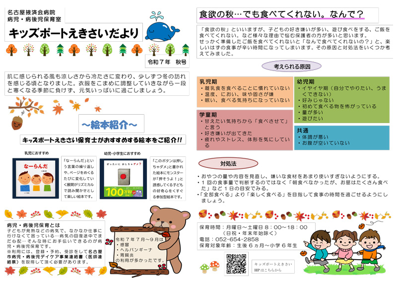 キッズポートえきさい キッズポートえきさいだより 施設の様子や子どもの病気について、子育てのお役立ち情報などを掲載したお便りを発行しています。バックナンバーもご覧いただけます。 令和7年秋号 令和7年夏号 令和7年春号 令和7年冬号 令和6年秋号 令和6年夏号 令和6年春号 令和6年冬号 令和5年秋号 令和5年夏号 令和5年春号 令和5年冬号 令和4年秋号 令和4年夏号 令和4年春号